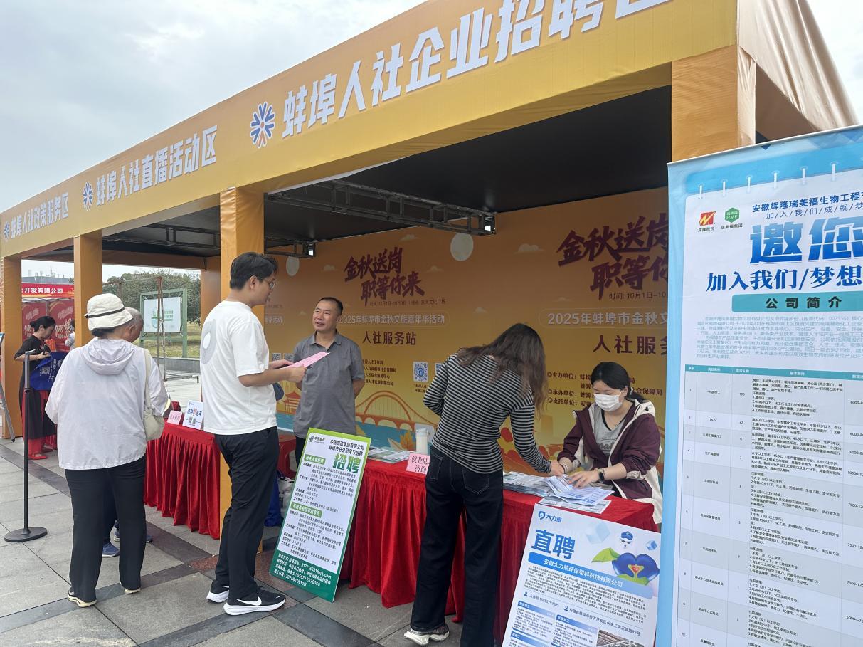 金秋送爽,淮河文化廣場西廣場人流如織。10月1日至3日每日14時至18時,由蚌埠市人力資源和社會保障局主辦、蚌埠市人才綜合服務中心承辦的人社服務專場招聘活動在此舉行,為正在舉辦的金秋文旅嘉年華增添了濃厚的民生服務氛圍,實現了“人社+文旅”有機融合。