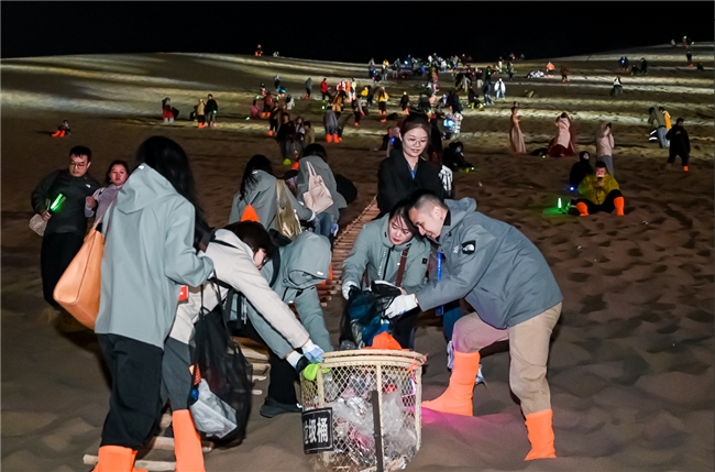 此外,在音樂季散場結束后,九牧還發起“帶走垃圾 留下愛心”的公益活動,組織志愿者沿途撿拾垃圾、清掃現場,并通過公益標語和直播的形式,呼吁大家積極參與活動,讓每個人化身沙漠綠洲守護者。