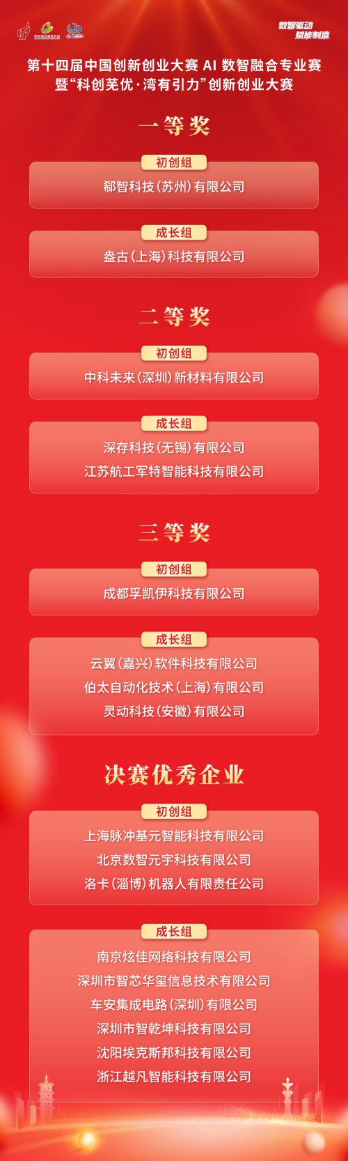 附:第十四屆中國創新創業大賽AI數智融合專業賽決賽,獲獎企業名單