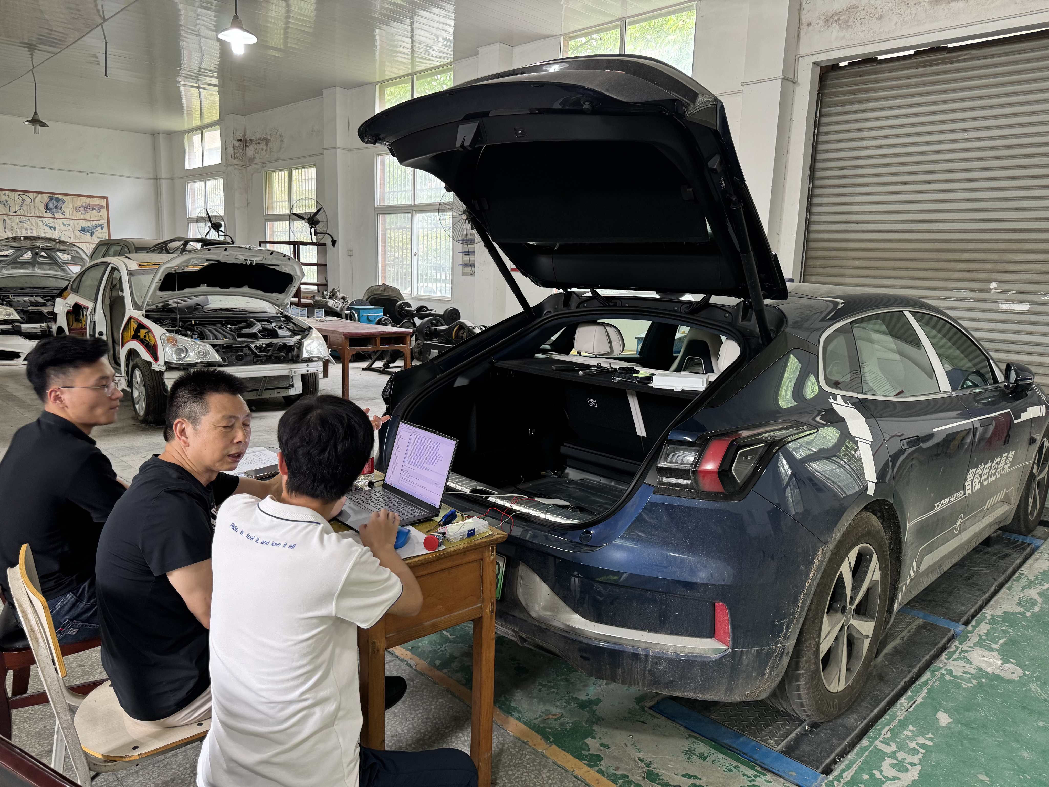 合工大團隊進行整車懸架調試。(合肥工業大學供圖)