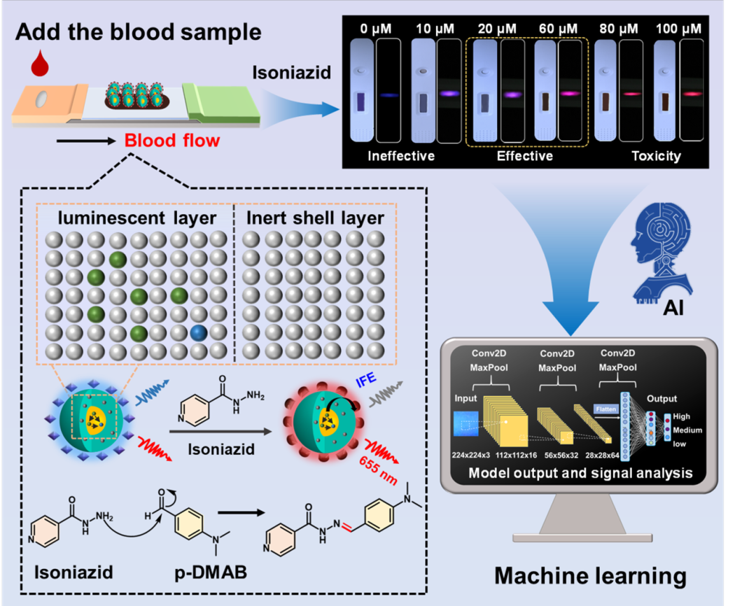 圖1.?上轉換探針結合智能手機-CNN分析對全血中異煙肼的超靈敏獨立檢測。