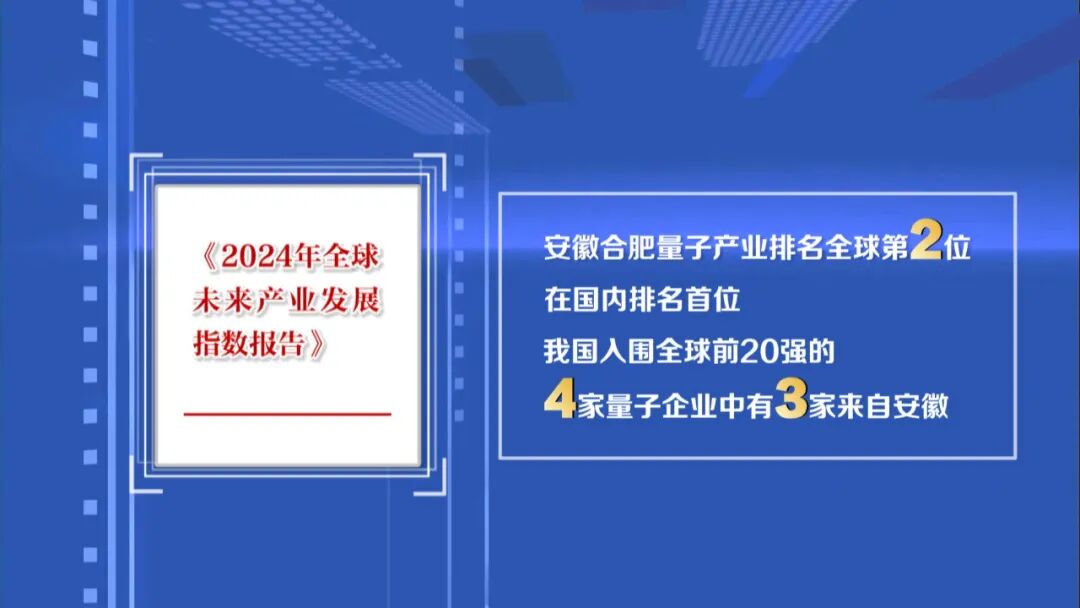 安徽作為國內(nèi)最早前瞻性系統(tǒng)布局量子科技研發(fā)與產(chǎn)業(yè)化的省份之一,在量子通信、量子計算、量子精密測量等領(lǐng)域創(chuàng)新成果不斷涌現(xiàn),已集聚全國近1/3的量子科技企業(yè),形成了全國最密集的量子產(chǎn)業(yè)生態(tài)圈。《2024年全球未來產(chǎn)業(yè)發(fā)展指數(shù)報告》顯示,安徽合肥量子產(chǎn)業(yè)排名全球第2位,在國內(nèi)排名首位,我國入圍全球前20強的4家量子企業(yè)中有3家來自安徽。