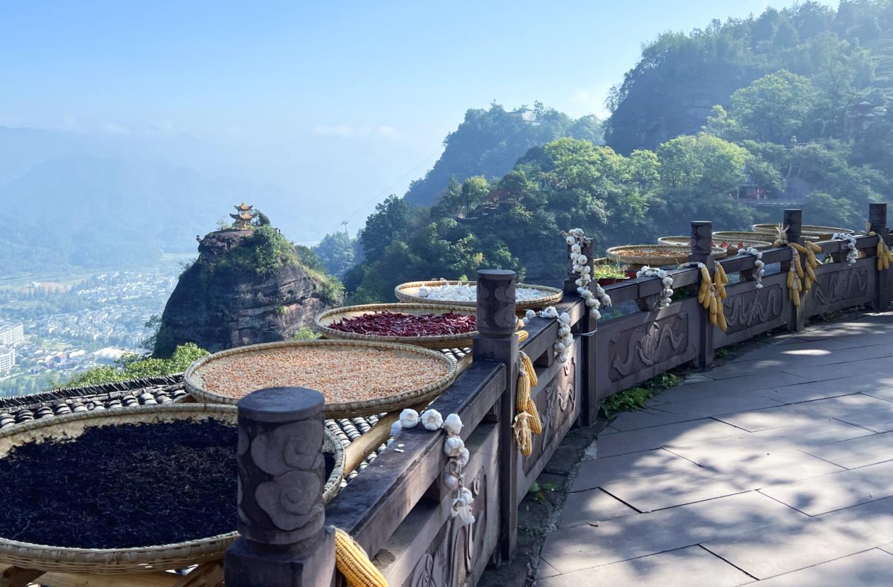 秋日的齊云山,迎來了一場色彩的盛宴。9月27日開始,齊云山景區創新推出獨具特色的“曬秋”景觀,火紅的辣椒、金黃的玉米等農作物,與古樸的月華街村落、險峻奇絕的山峰巧妙融合,構成了一幅絢麗多彩的秋日詩意畫卷,迅速成為游客爭相打卡的熱門景觀。