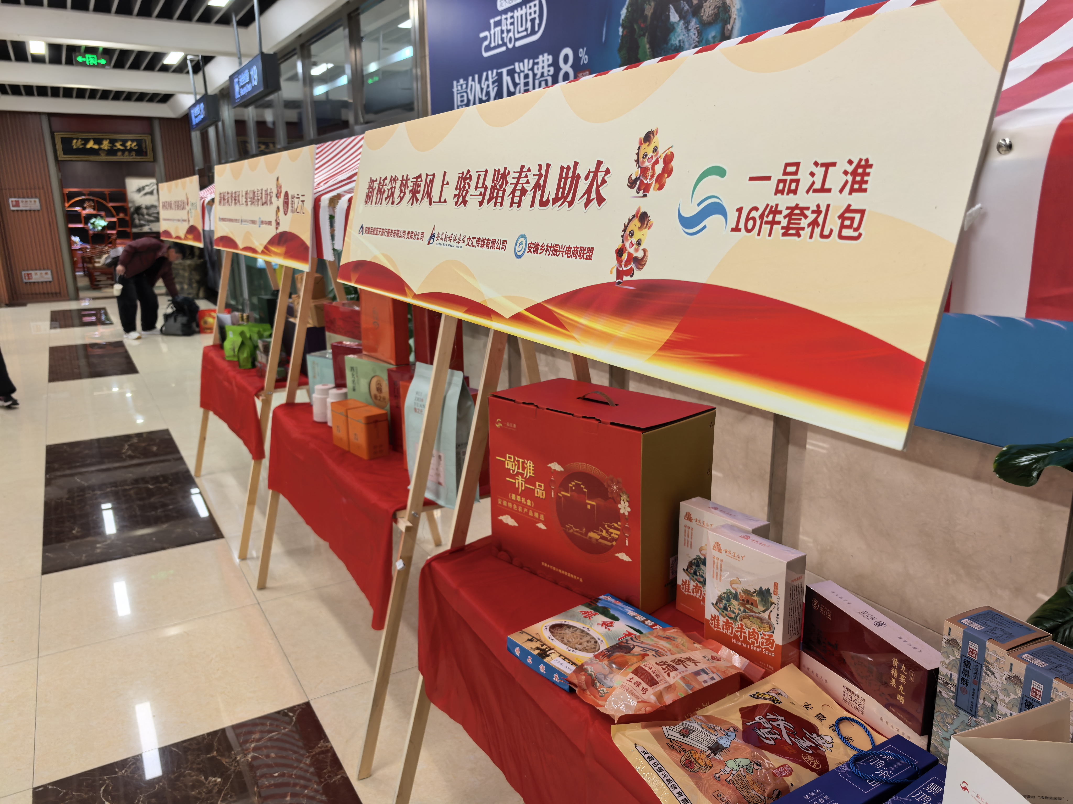歲序更替,華章日新。合肥新橋國際機場貴賓廳迎來了一份獨特的“年味”。由安徽民航藍天旅行服務有限公司貴賓分公司聯合安徽新媒體集團、安徽鄉村振興電商聯盟共同舉辦的“新橋筑夢乘風上,駿馬踏春禮助農”新春助農活動正式啟動。活動中,“安徽16件套”年貨禮包及一系列鄉村好物正式進駐機場貴賓廳,向八方旅客展現安徽鄉村振興的豐碩成果與動人風采。