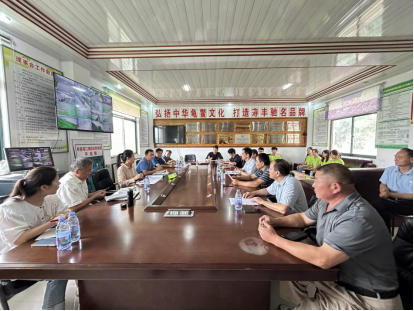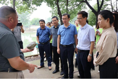 隨后,與會領導一行實地觀摩了甲魚新品種“珠水1號”的本土化養殖情況。現場,甲魚養殖基地內生機勃勃,新品種甲魚長勢良好,展現了科技小院在推動甲魚產業健康發展方面的顯著成效。