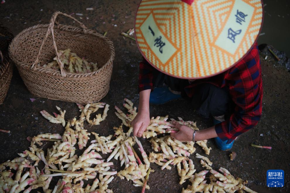 8月31日,在安徽省銅陵市義安區天門鎮,村民在處理自家采收的銅陵白姜。新華社記者 張端 攝