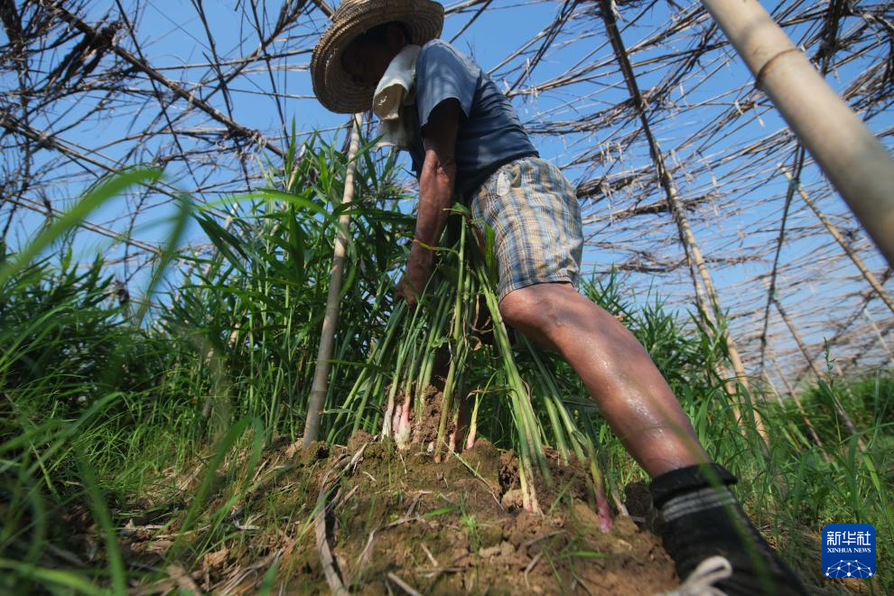 8月31日,在安徽省銅陵市郊區大通鎮大院村的一處姜田,村民在采收銅陵白姜。新華社記者 張端 攝