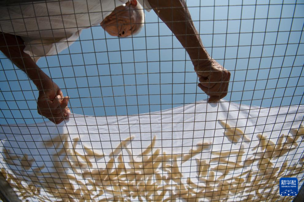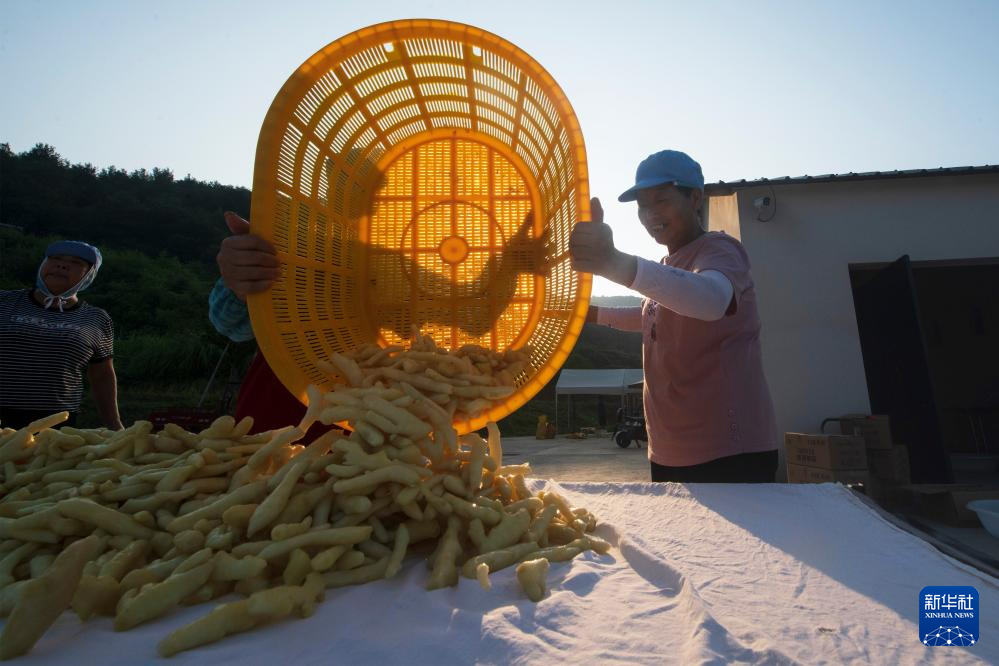 9月1日,在安徽省銅陵市郊區大通鎮大院村山禮白姜工坊門前,工作人員在晾曬白姜。新華社記者 張端 攝
