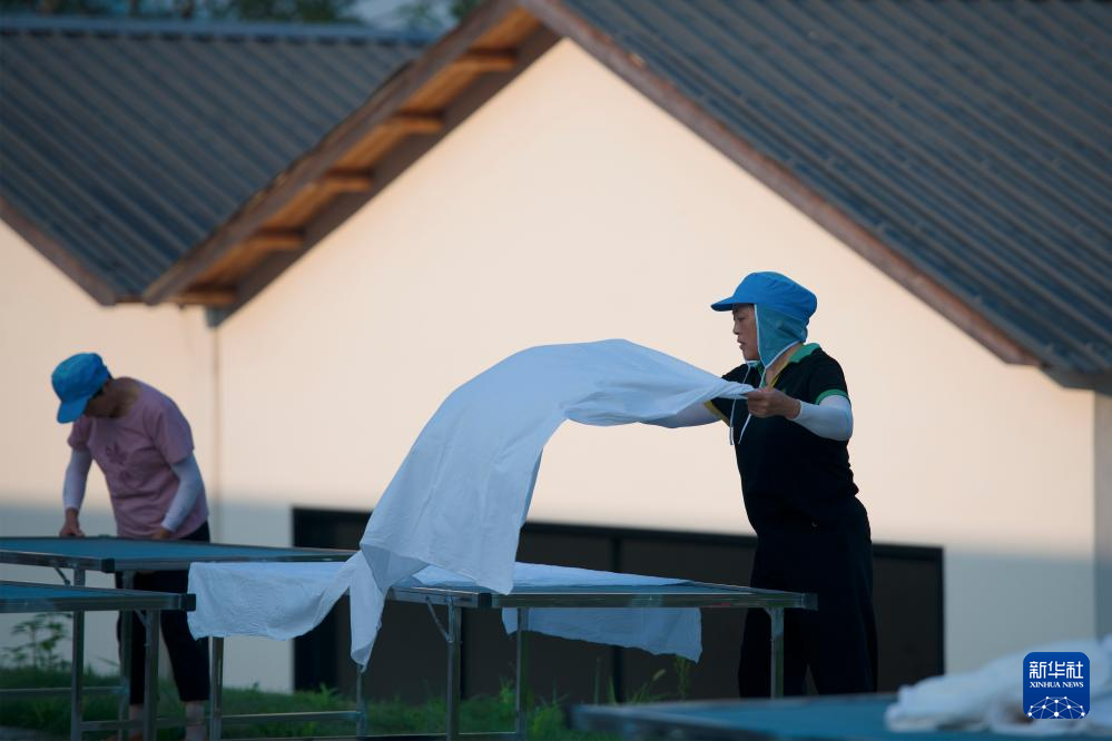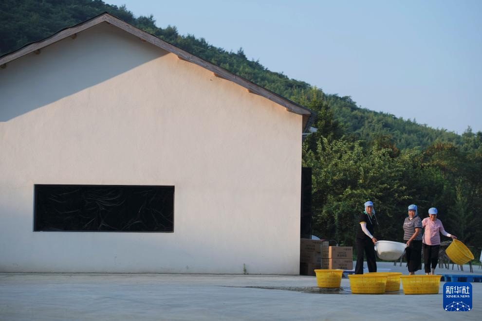 9月1日,在安徽省銅陵市郊區大通鎮大院村山禮白姜工坊門前,工作人員準備晾曬白姜。新華社記者 張端 攝
