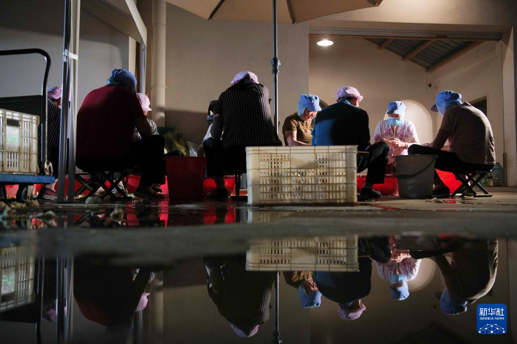 9月14日晚,在安徽省銅陵市郊區大通鎮大院村山禮白姜工坊門前,工作人員在加工銅陵白姜。新華社記者 張端 攝