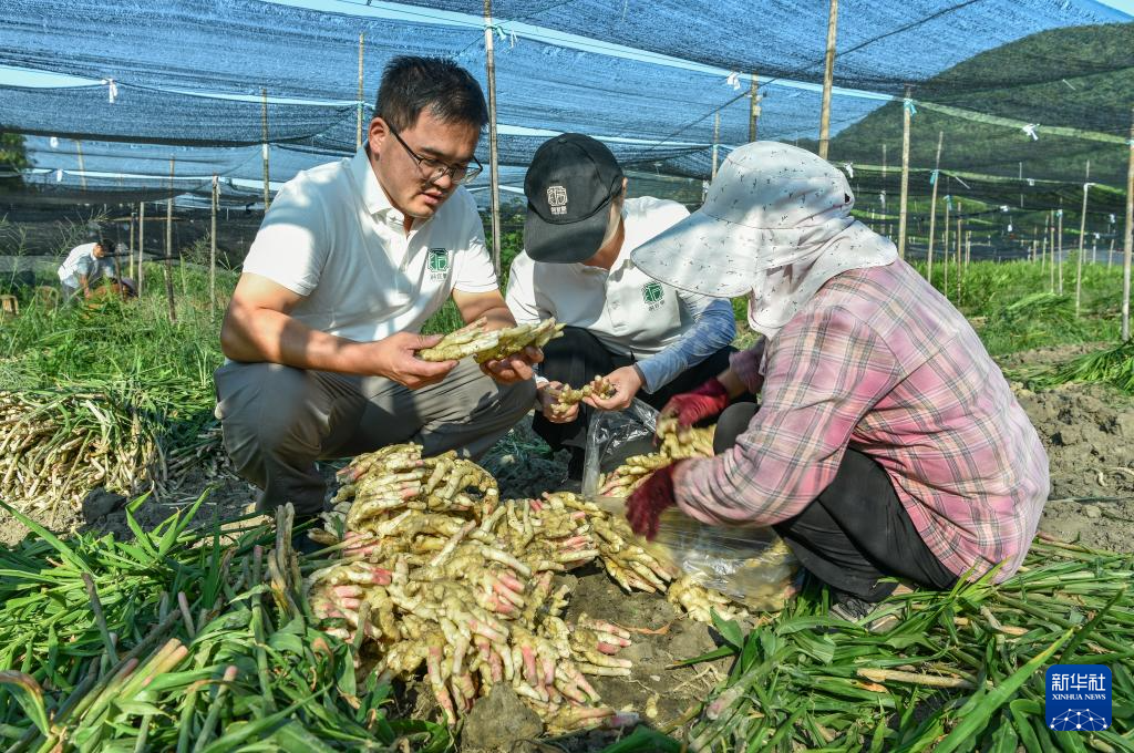 9月6日,在安徽省銅陵市義安區天門鎮,一家超市的工作人員(右)在收購白姜。新華社發(儲著傳 攝)