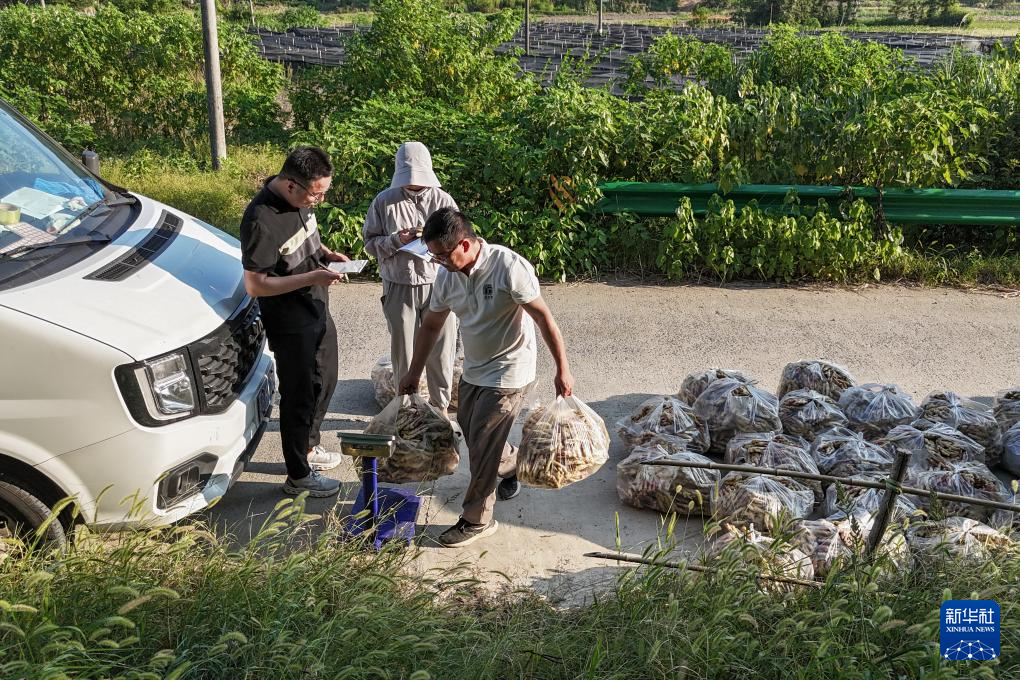 9月6日,在安徽省銅陵市義安區天門鎮,一家超市的工作人員在收購白姜。新華社發(儲著傳 攝)