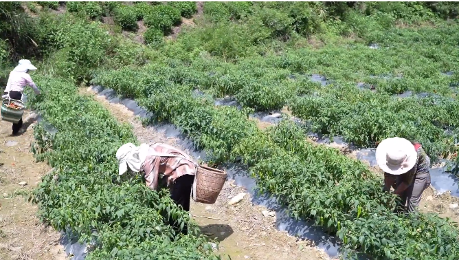 當地村民告訴筆者,獨特的高山氣候和土壤條件,孕育出的辣椒肉質脆嫩、辣中回甜,深受市場青睞。通過多茬采摘,辣椒的收獲期可持續到中秋節左右?!斑@個辣椒的口感,帶一點辣味,條形比較好,皮也比較薄,肉也比較脆?!笔Y勝取笑著說道,“吃起來有一點微甜,可以做辣椒醬、腌辣椒、干辣椒。”