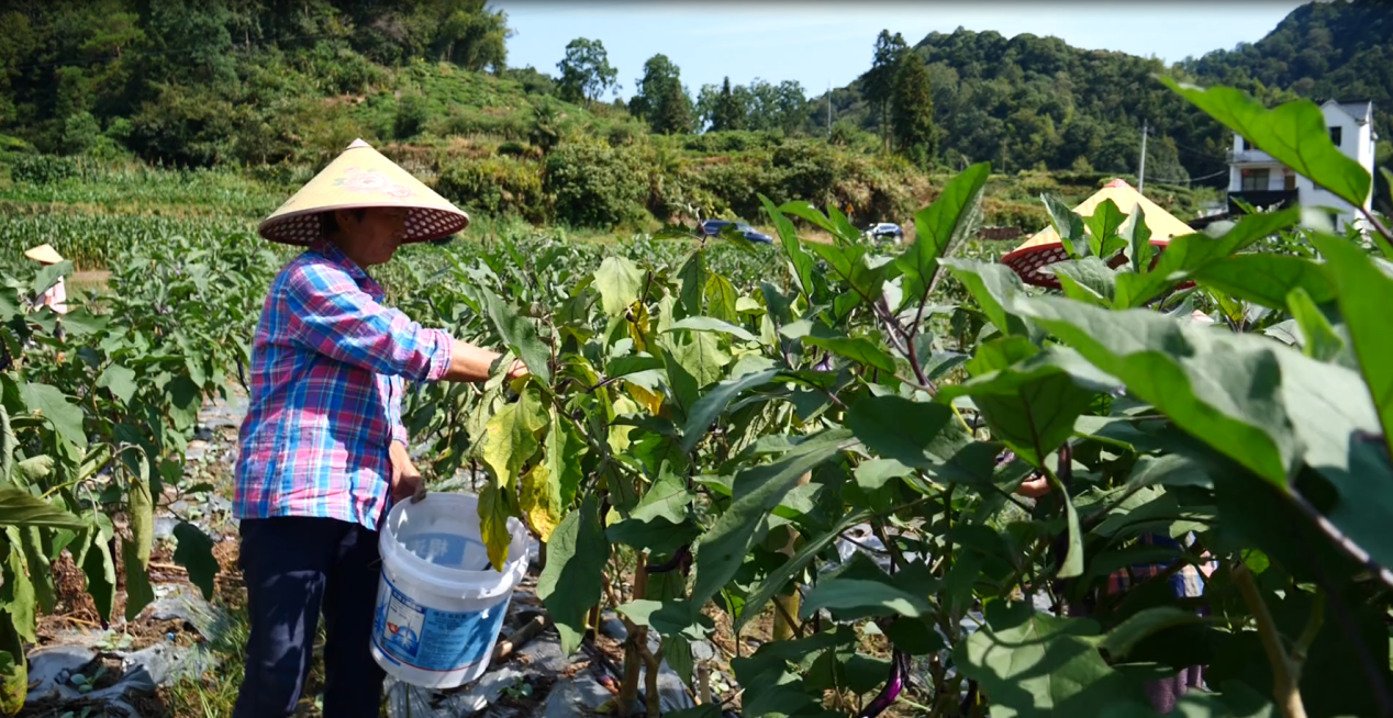 該茄子種植基地面積110畝,四面青山環繞,一條清澈的小溪蜿蜒流過。山清水秀的生態環境,適宜的土壤氣候條件,為茄子的生長創造了得天獨厚的自然條件。這里原來有一部分是撂荒地,今年農業種植能手將其流轉下來,然后通過開荒復墾,全部種上了茄子。基地負責人胡達林表示:“我們推動茄子種植專業化規模化,采取集中連片種植,精細化管理,確保茄子的產量和質量。”