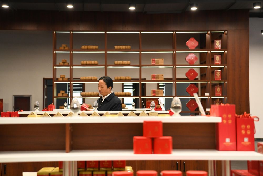 11月26日,王昶在安徽省祁門紅茶發展有限公司內查看祁門紅茶產品。