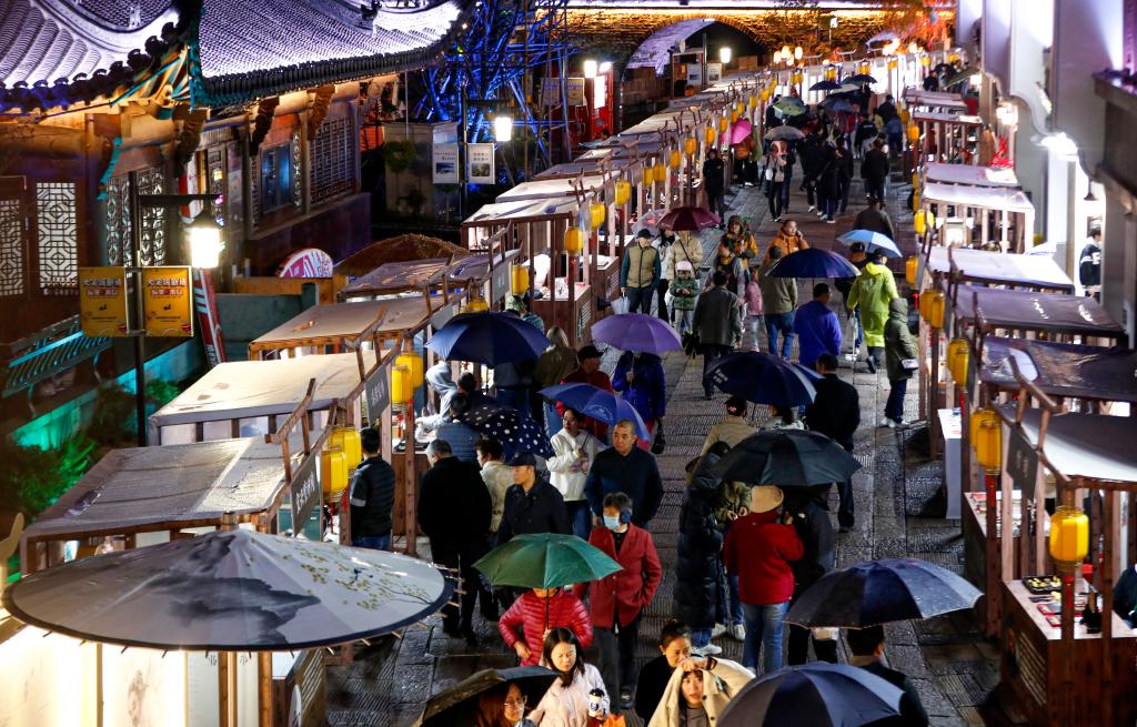 新華社合肥11月12日電夜幕下,安徽省黃山市新安江邊的屯溪河街人頭攢動。流光溢彩的徽州漆器、巧奪天工的廬州蛋雕、清香四溢的綠茶制作……一項項多姿多彩的傳統(tǒng)非遺技藝,點燃了徽州古街的煙火氣。