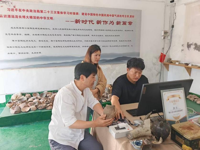 上世紀中葉,歙縣桂林鎮竦口村北發現了多處唐宋歙州竦口窯遺址,舊窯址出土的窯具殘件距今已有1170多年的歷史。2020年,桂林鎮引進民間陶瓷研究愛好者洪兵,牽頭成立竦口窯陶瓷研究所,對竦口窯文化進行收集與挖掘。洪兵在汲取傳統瓷器精髓的基礎上大膽創新,將現代審美融入器型設計,讓千年窯火淬煉出的瓷器既有古韻又含新意。筆者在洪兵的竦口窯陶瓷研究所,看到了很多他新制作的精美陶瓷。近日,桂林鎮工作人員上門為洪兵的作品進行版權登記。工作人員逐一對瓷器進行拍照,并耐心指導他在版權登記平臺上填寫作品信息,完成上傳操作。