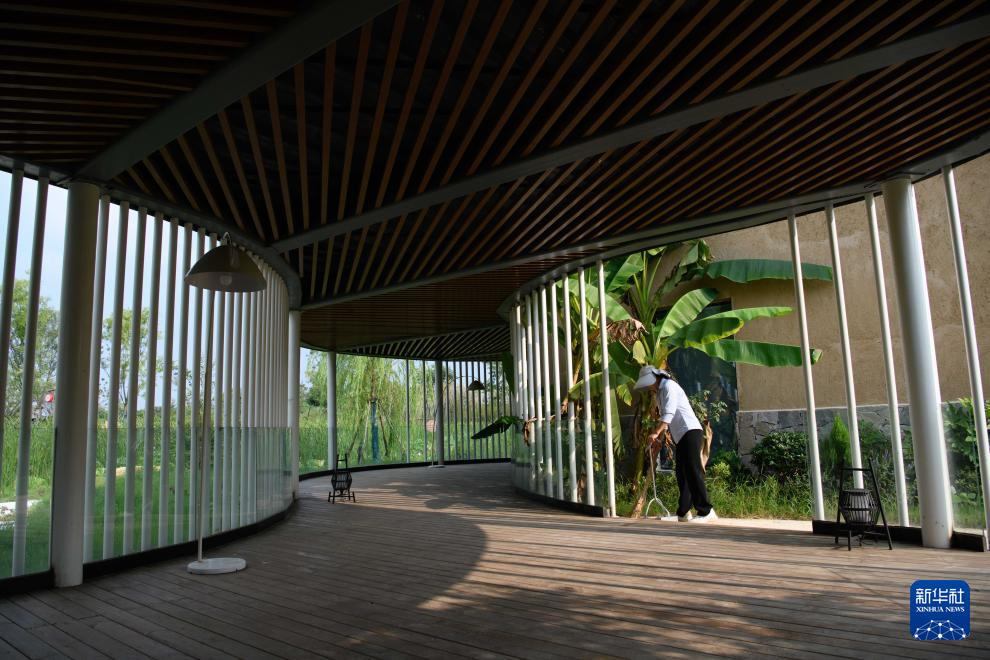 8月22日,工作人員在小崗村的“小崗村宿”進行清潔工作。新華社記者 張端 攝
