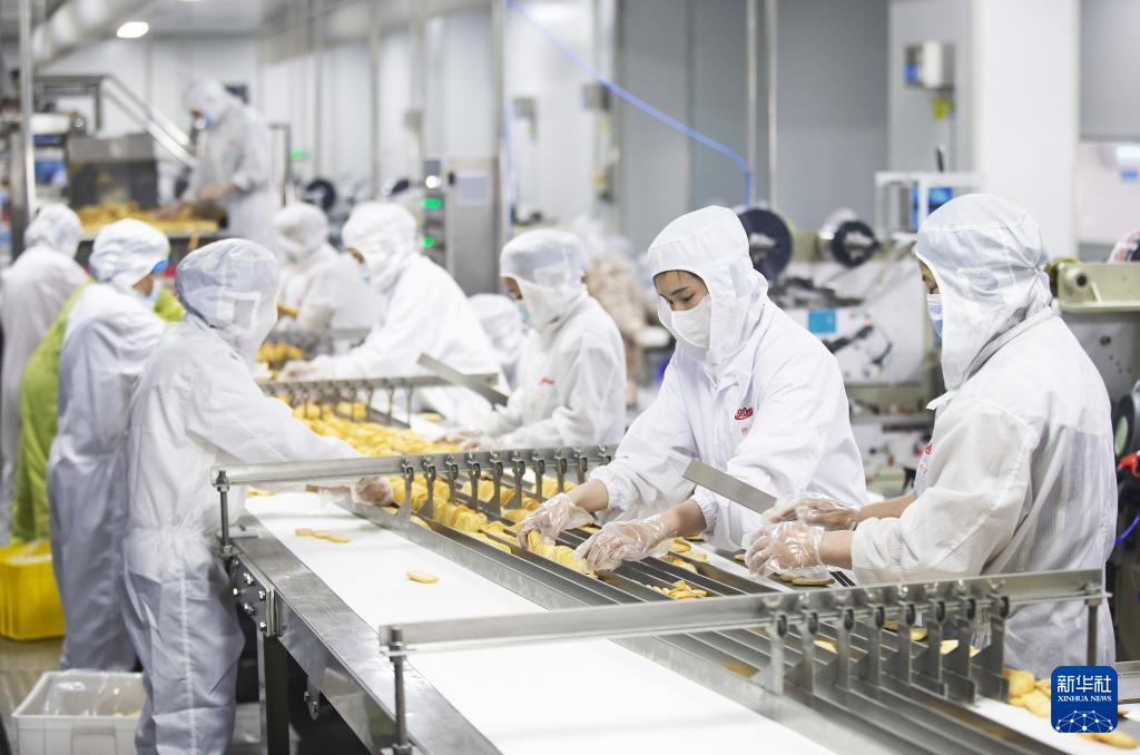 8月12日,工人在位于小崗村的安徽省小崗盼盼食品有限公司生產線上作業。新華社發(王波 攝)