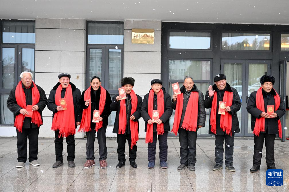 2月1日,8位“大包干”帶頭人展示領到的2023年度分紅紅包。新華社記者 黃博涵 攝