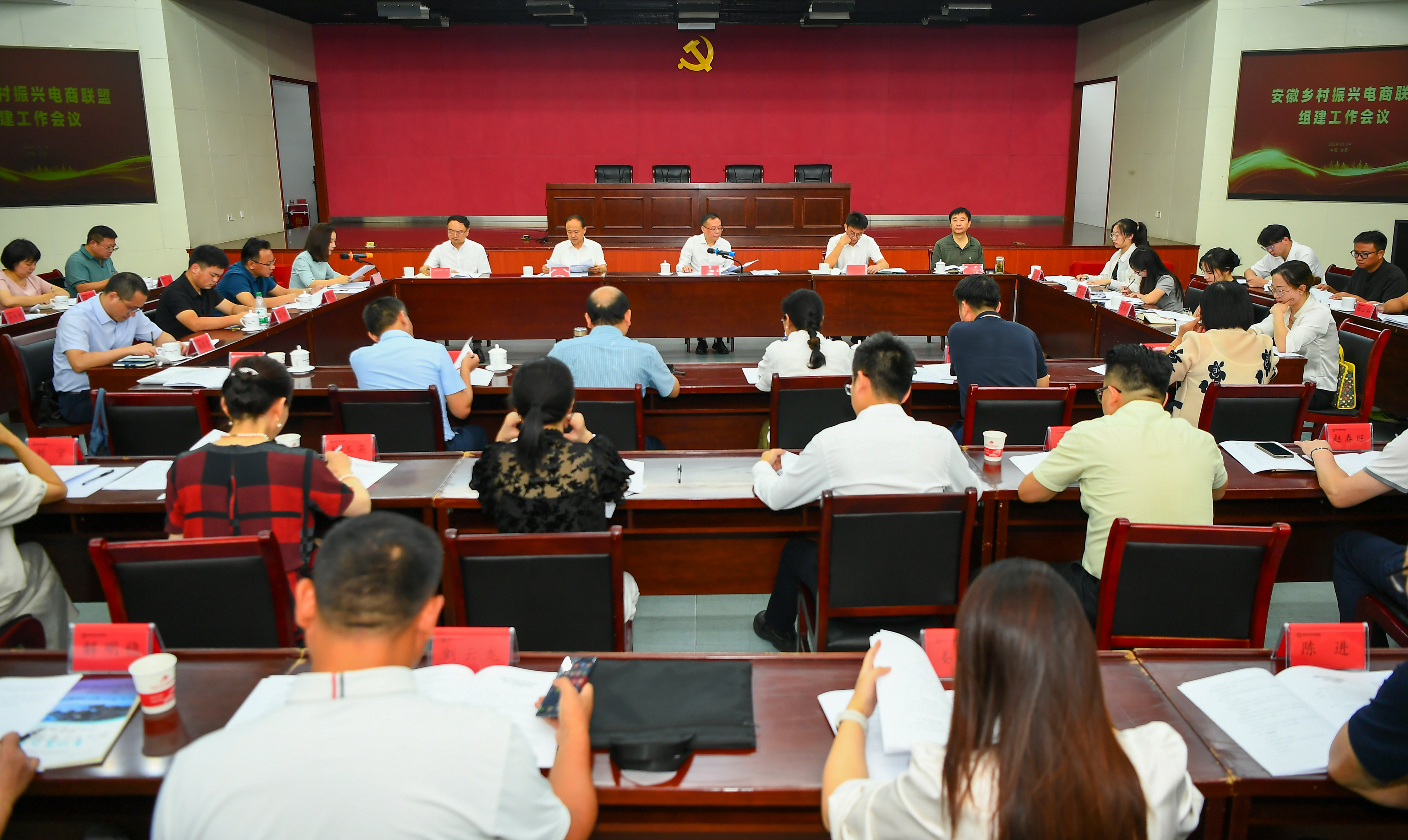 中安在線、中安新聞客戶端訊 9月4日上午,安徽鄉村振興電商聯盟組建工作會議在合肥召開,聯盟指導單位、共同發起單位、成員單位代表等齊聚一堂,共商聯盟組建大計。會議由安徽新媒體集團黨委書記、董事長、總經理章理中主持,省委宣傳部、省委網信辦、省文化和旅游廳等指導單位相關業務處室負責人參加會議。