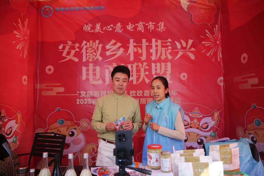 元月11日,“文旅惠民促消費 歡歡喜喜過大年” 2025春節主題文化和旅游銅陵主場活動在永泉小鎮盛大啟幕。同時,年貨、電商、文創、非遺、體驗等市集精彩上演,由安徽鄉村振興電商聯盟(安徽鄉村振興網)精心打造的“皖美心意·電商市集”更是吸引了眾人的目光。