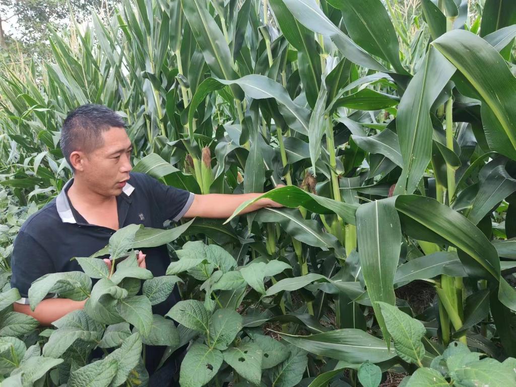 8月22日,宋來寶在田間察看灌漿期玉米長勢。(受訪者供圖)